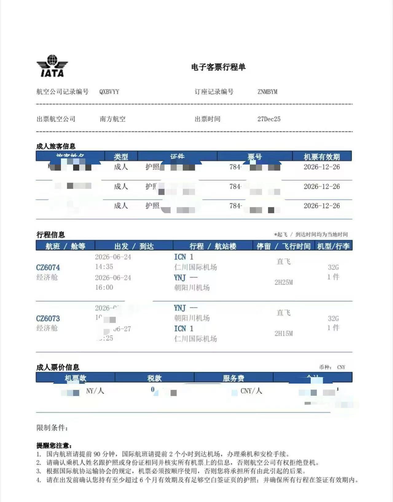 [2026/6/24][남방항공] 한사장님 9명, 단체항공 발권완료